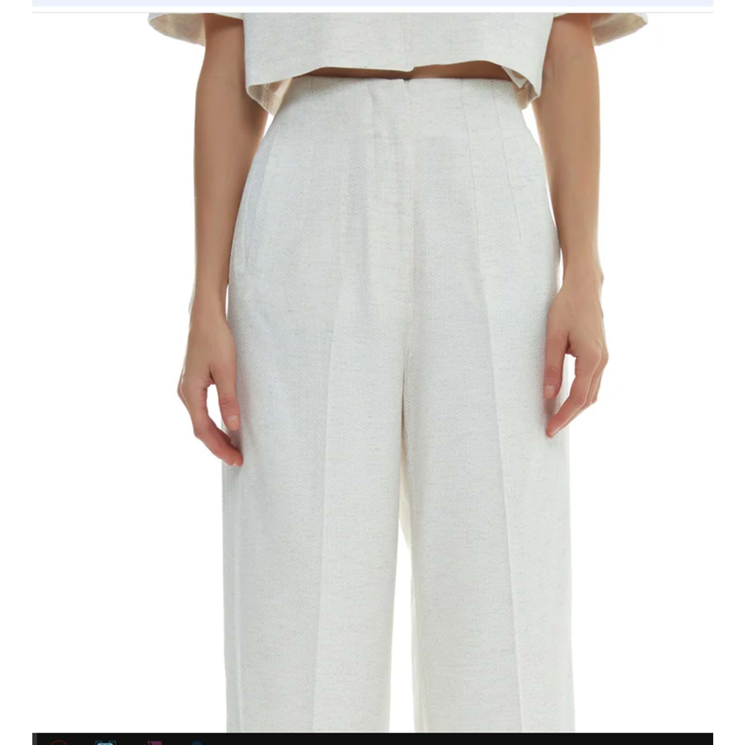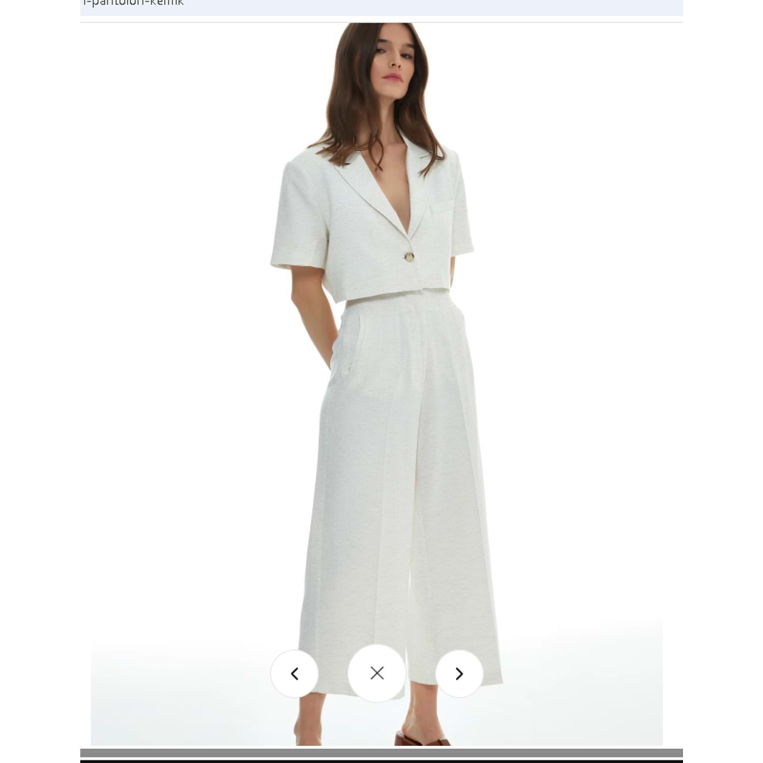 Keten karışımlı, yüksek bel, pens detaylı, önden gizli kapama düğmeli, bol paça, kısa pantolon Kumaş Bilgisi Keten %100